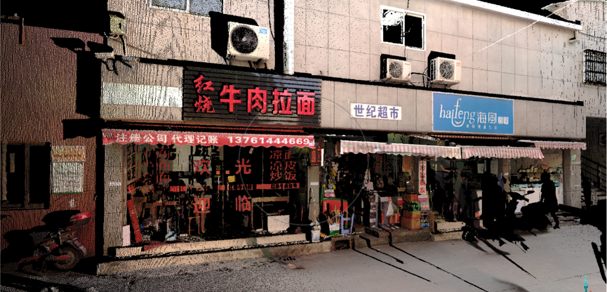 掃描現(xiàn)場環(huán)境復雜,行人車輛較多,需要后期在點云數(shù)據(jù)中把雜亂的數(shù)據(jù)去掉。