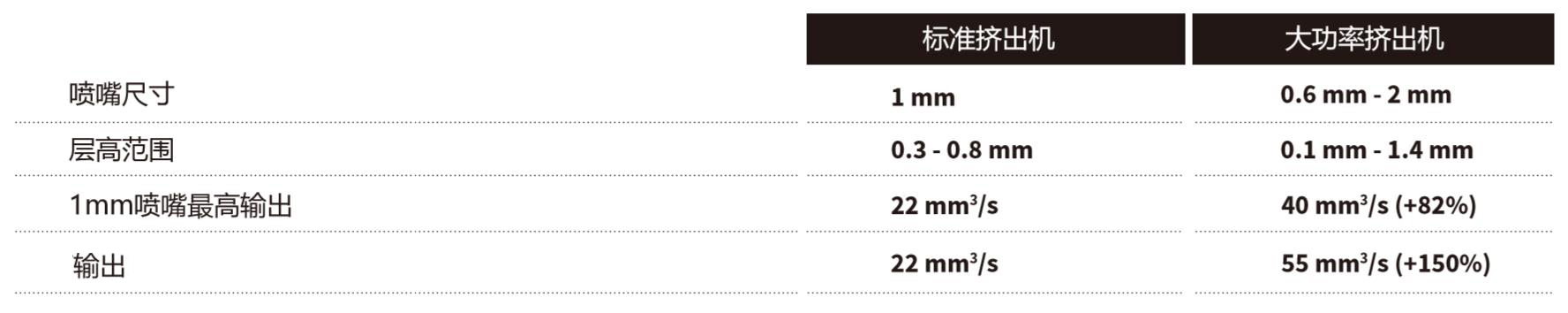裝配了新型大功率加熱頭,配合0.6 mm, 1mm和2mm噴嘴,用戶可以更靈活地,快速獨(dú)立地在噴嘴之間進(jìn)行切換。