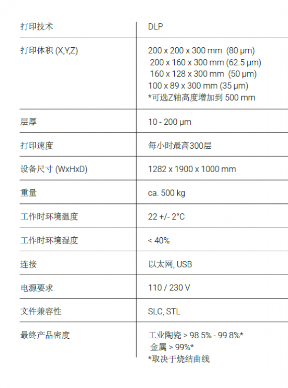 陶瓷3D打印機(jī)Admaflex 300 一臺(tái)機(jī)器具有較大的打印體積和獨(dú)特的 3D 打印能力,可同時(shí)對(duì)先進(jìn)的陶瓷和金屬進(jìn)行 3D 打印,并針對(duì)二氧化硅殼和核的較高精度鑄造應(yīng)用進(jìn)行了優(yōu)化。 ? 特征: ? 大體積 ? Admaflex 300 具有非常穩(wěn)定的生產(chǎn)機(jī)器概念,能夠處理各種粘度的原料。打印機(jī)的標(biāo)準(zhǔn)構(gòu)建體積為 200x200x300 mm。使用 Admaflex 技術(shù)在熔模鑄造應(yīng)用中滿足客戶的需求。 ? 特征: ? 供料系統(tǒng) ? Admaflex 300 具有集成的大容量漿料處理系統(tǒng),具有自動(dòng)視覺控制的配料功能,可對(duì)大型組件進(jìn)行3D打印。它旨在有效地處理通常與陶瓷漿料相關(guān)的高粘度材料,從而實(shí)現(xiàn)高可靠性和速度,以實(shí)現(xiàn)連續(xù)的高產(chǎn)量和大批量生產(chǎn)。這種創(chuàng)新的系統(tǒng)還可以通過(guò)重復(fù)使用剩余的漿料來(lái)實(shí)現(xiàn)高效的原料管理。 ? 特征: ? 開放平臺(tái) ? Admaflex 300 是一個(gè)開放系統(tǒng),可控制打印過(guò)程。該軟件具有自定義參數(shù)的功能,可以在打印過(guò)程之前和期間進(jìn)行層到層的控制。它提供了使用不同材料的機(jī)會(huì),并為開發(fā)新材料提供了靈活性。標(biāo)準(zhǔn)的軟件功能是“多部分打印”,使您可以控制每個(gè)部分和層的曝光設(shè)置。 ? 特征: ? 過(guò)程監(jiān)控系統(tǒng)附加組件 ? 過(guò)程中質(zhì)量監(jiān)控是一項(xiàng)出色的功能,可追溯打印過(guò)程。這些軟件和硬件組件監(jiān)視溫度,濕度和箔的使用情況。它還具有用于實(shí)時(shí)視頻捕獲和延時(shí)錄制的雙攝像頭系統(tǒng)。例如,這使用戶能夠部分停止打印有缺陷的產(chǎn)品,以使剩余部分成功完成。 ? ADMAFLEX 300技術(shù)規(guī)格 ? ADMAFLEX 300 ? 陶瓷打印,從粉末到成品 金屬打印,從粉末到成品 ? ADMAFLEX 300 Admatec 提供 3D 打印,脫脂和燒結(jié)解決方案,并提供培訓(xùn)以幫助客戶在流程的每個(gè)步驟中獲得較佳的結(jié)果。 ? 更多內(nèi)容點(diǎn)擊——陶瓷3D打印機(jī)Admactec 上一頁(yè) 下一頁(yè)