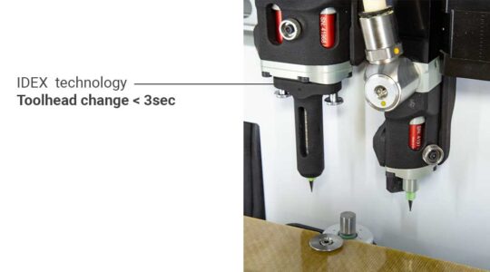 S300X-LIQ21LIQ11采用IDEX(獨(dú)立雙擠出)技術(shù)設(shè)計(jì),配置單組份和雙組份工具頭,LIQ21用于擠壓雙組分材料,LIO11 用于擠壓單組分材料。特別是完全可溶的支撐材料,能夠打印復(fù)雜的幾何形狀,對形狀沒有限制。